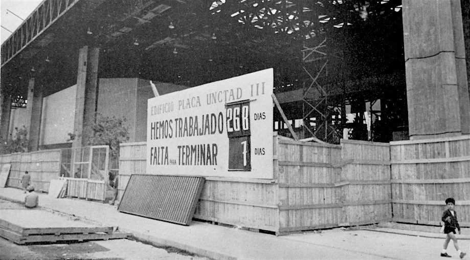 En 1972, Salvador Allende era el primer presidente socialista electo democráticamente en la región, cuyo partido era parte de la Unidad Popular (UP), una coalición de izquierda. En ese tiempo, Latinoamérica vivía un cambio económico importante, apurándose a alcanzar el desarrollo e industrialización del resto del mundo. Las principales ciudades tuvieron una aceleración de construcción y se desbordaron de sus ejes. Fue en ese contexto que apareció la oportunidad de alojar en Chile una conferencia internacional cuyo fin era asistir a los países en vías de desarrollo a integrarse en la economía mundial. La UNCTAD, Conferencia de las Naciones Unidas sobre Comercio y Desarrollo, cuyo énfasis era empujar el crecimiento económico en países en desarrollo. En aquel año, se celebraba la tercera edición, y necesitaban un lugar donde hacerla.