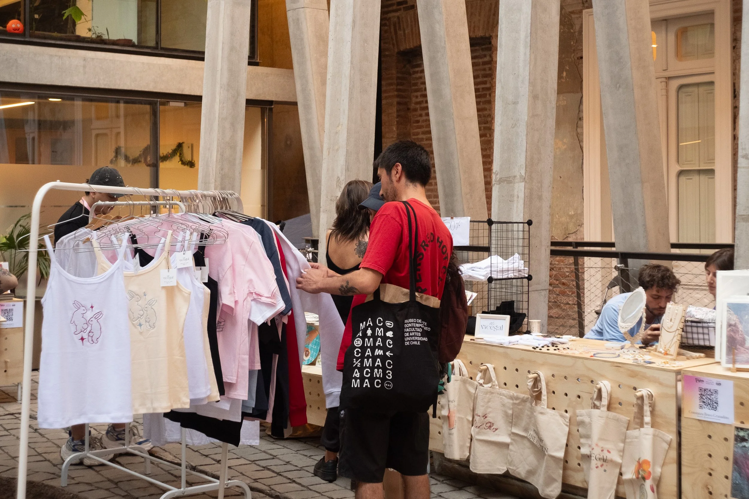 En esta edición, reunimos a 35 proyectos creativos locales en el patio del Palacio Pereira. Paralelamente a la feria, invitamos a tres talleres –Taller Espejo Negro, Taller Percán y Tsonotlab Estudio– a exponer en los pasillos del Palacio sus investigaciones en torno a materiales de origen biológico, que postulan formas alternativas de creación en consonancia con las necesidades de nuestro presente.